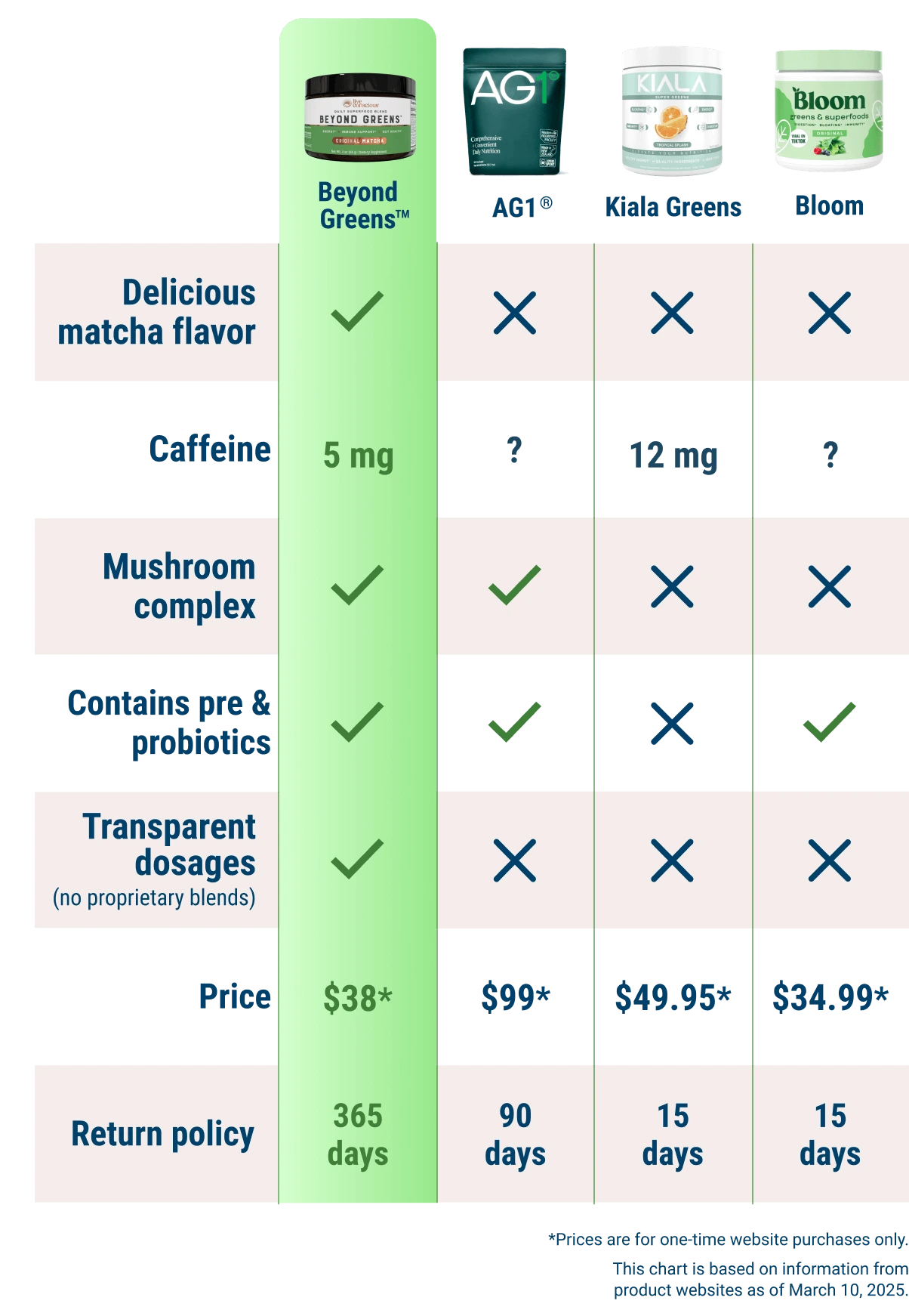 Some people may experience mild digestive discomfort when trying new supplements, including Beyond Greens. If you are sensitive, you may want to begin with a smaller dose and gradually increase to the suggested amount. That being said, Beyond Greens is generally easy to digest with few reported side effects.