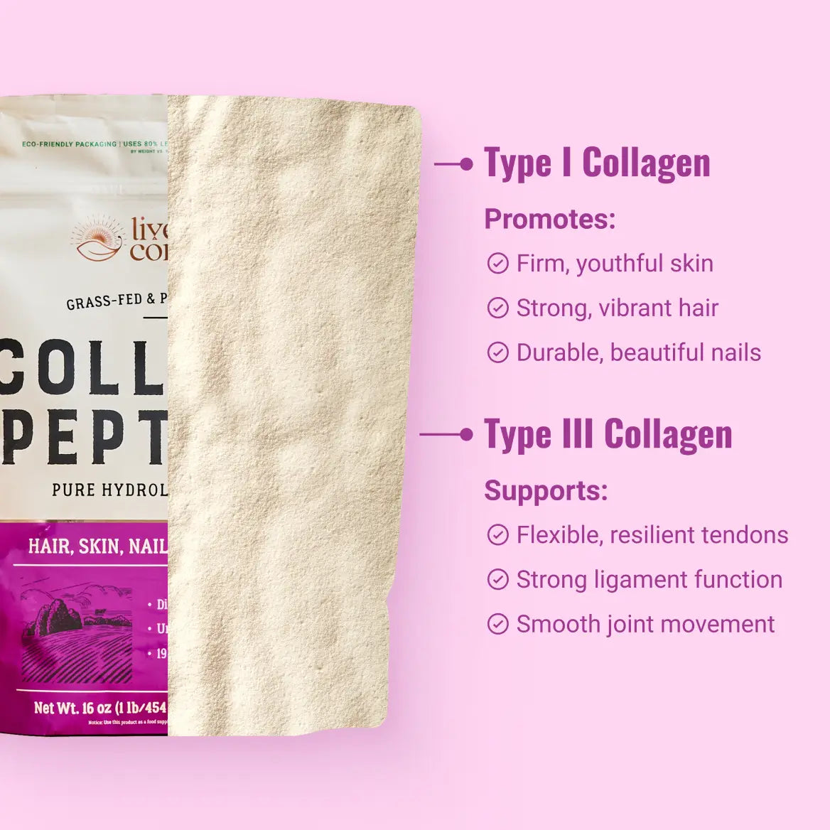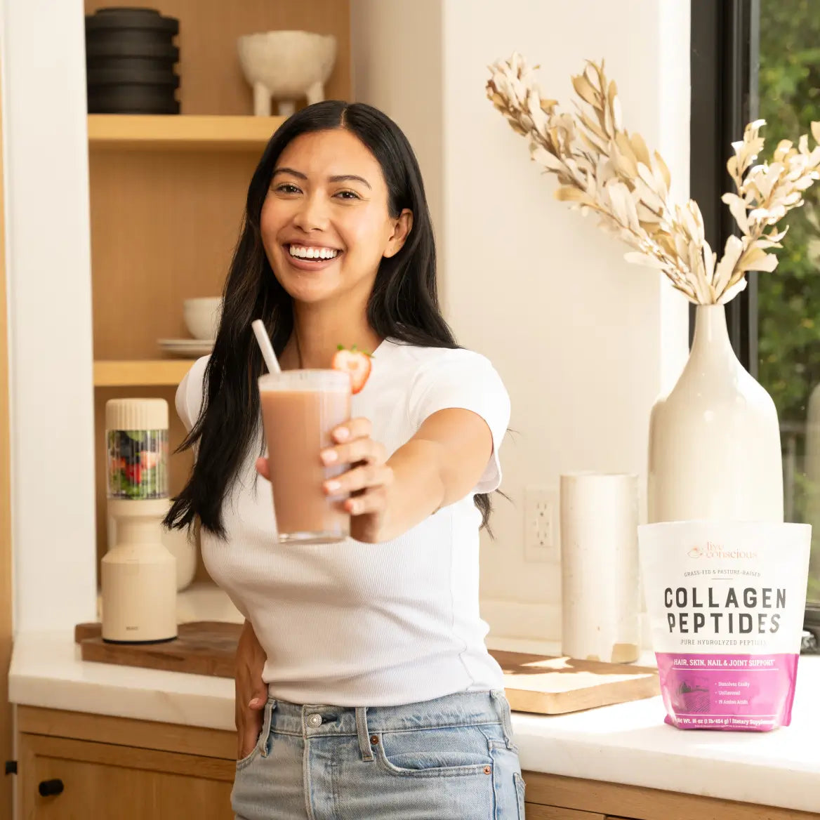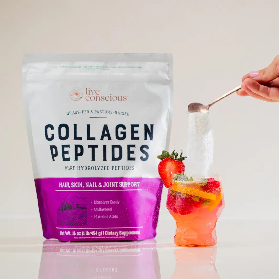 Live Conscious Collagen Peptides delivers 15 grams per serving, giving you undeniable results with each serving.