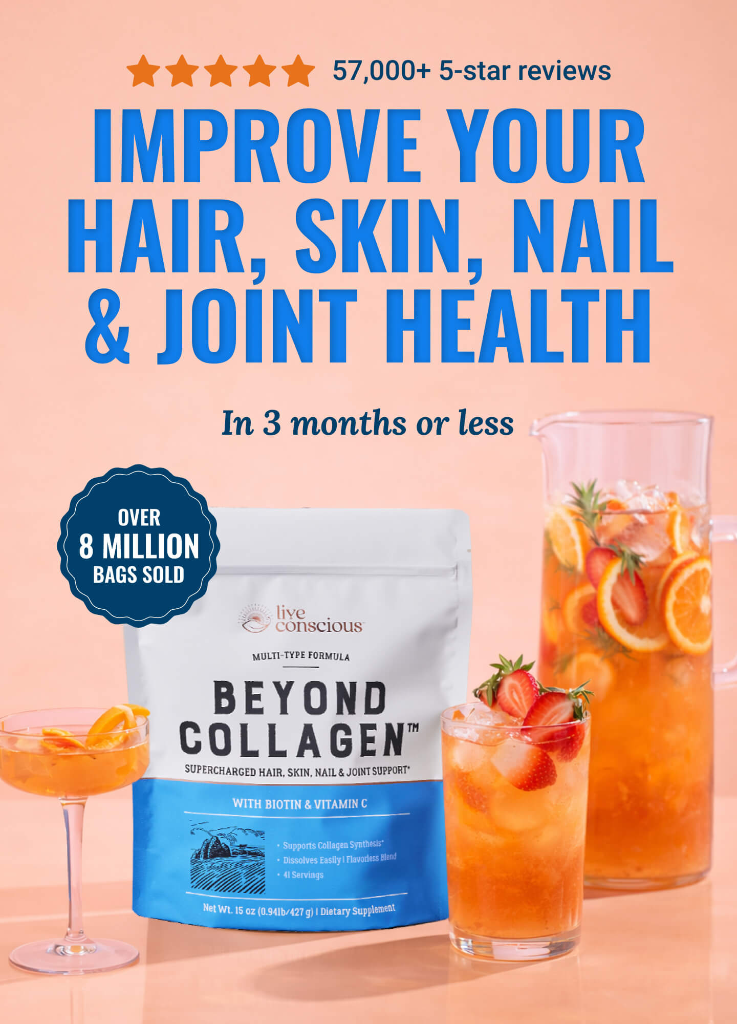 Beyond Collagen® delivers all 5 essential types from 4 premium sources, plus Biotin and Vitamin C to trigger your body’s natural ability to produce its own collagen for lasting, internal results. It's not just collagen—it's a complete rejuvenation system.