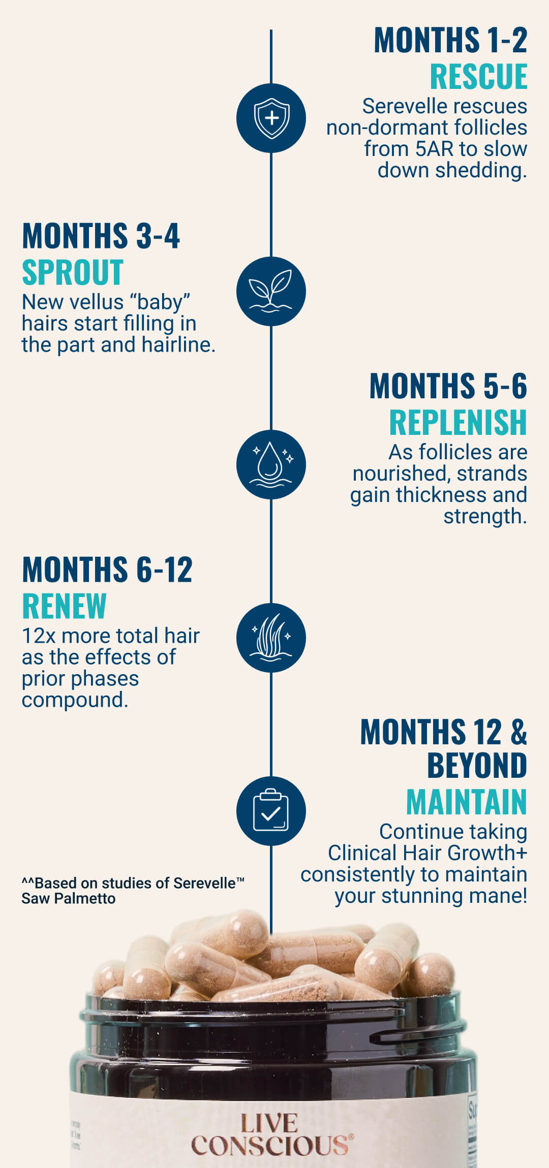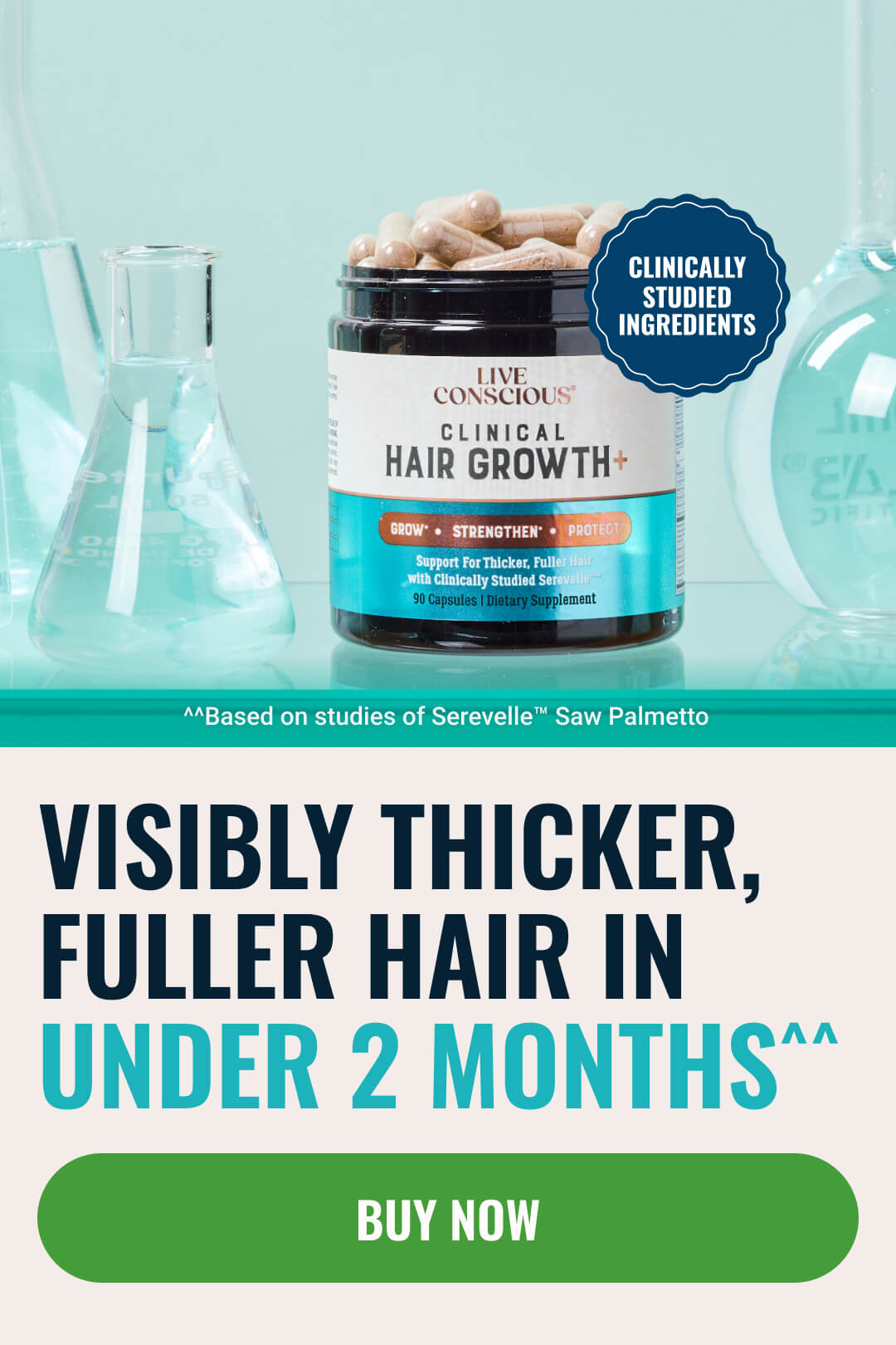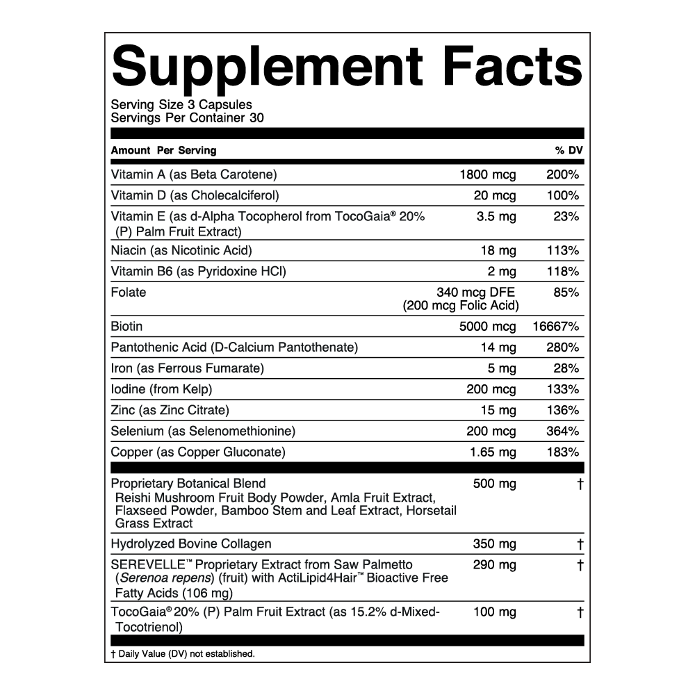 Clinical Hair Growth+ was engineered to support healthy hair growth and defend against follicle miniaturization at the source.* Serevelle™, the formula’s clinically studied botanical extract, delivers 75 times more 5AR-neutralizing fatty acids compared to generic saw palmetto. These fatty acids bind to 5AR, stopping the reaction that shrinks the follicles.