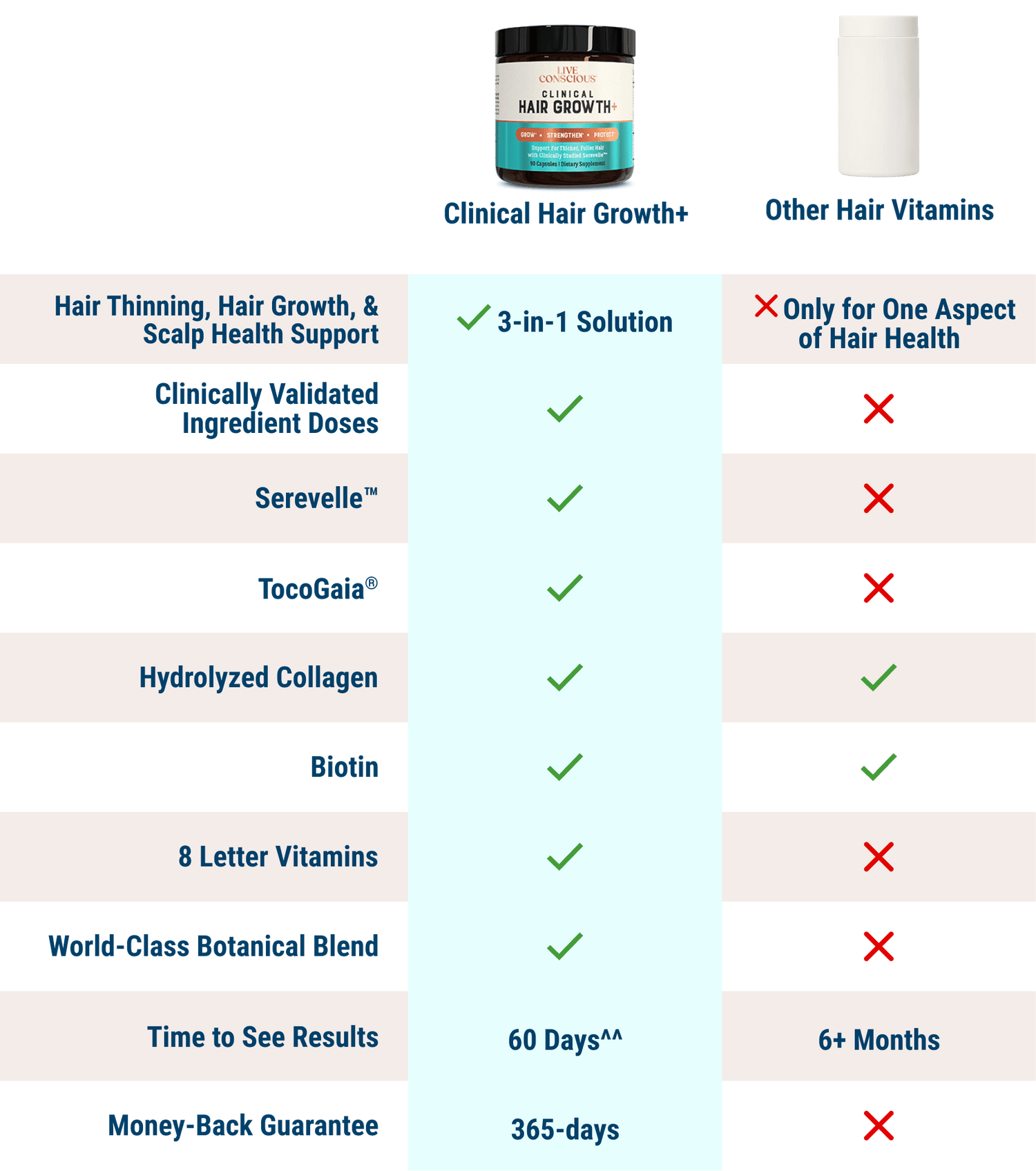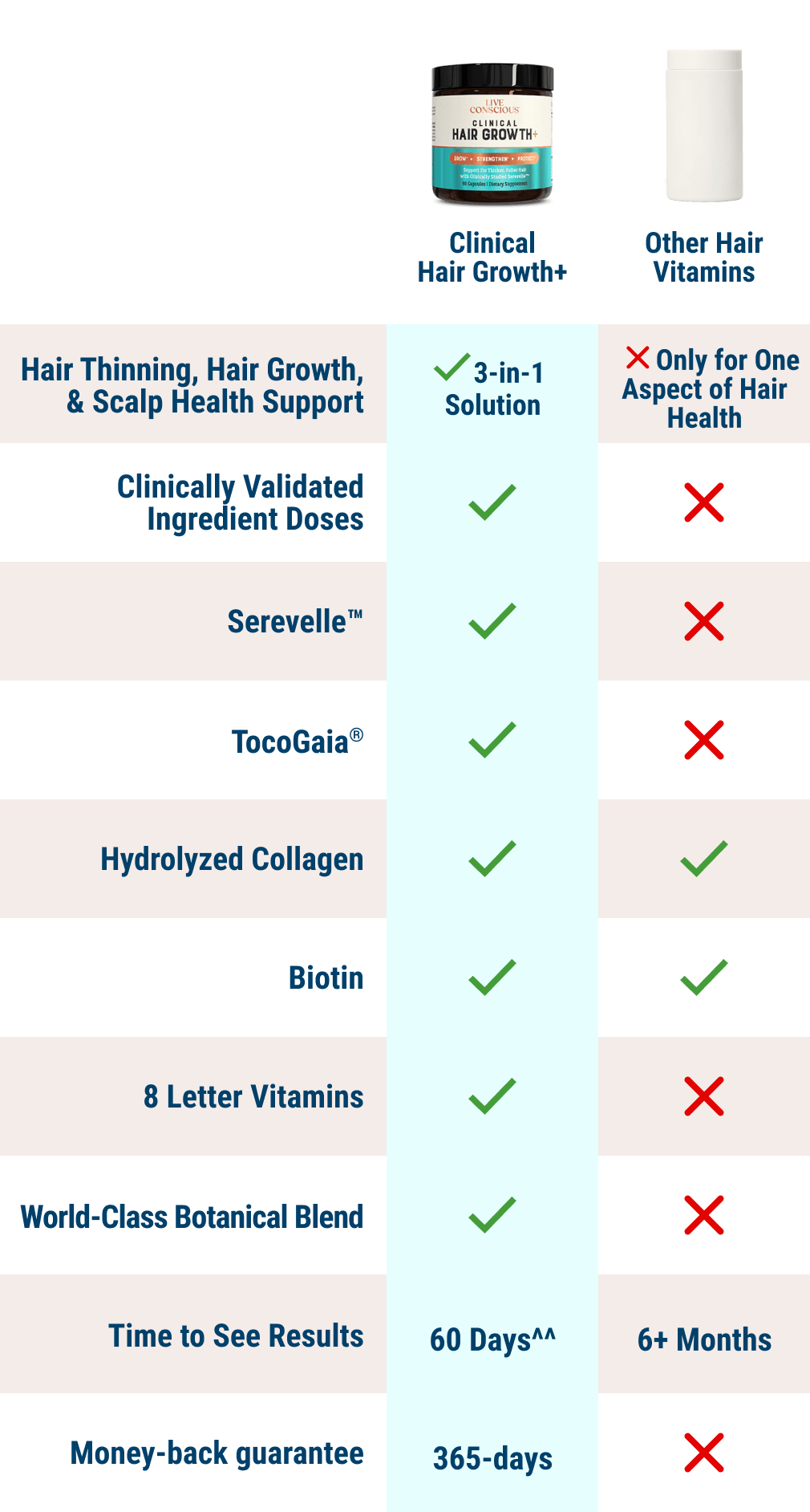 By targeting 5AR, Clinical Hair Growth+ allows follicles to return to their normal size and finally absorb its 20+ bioactive ingredients, helping hair grow back thicker, fuller, and stronger.*
